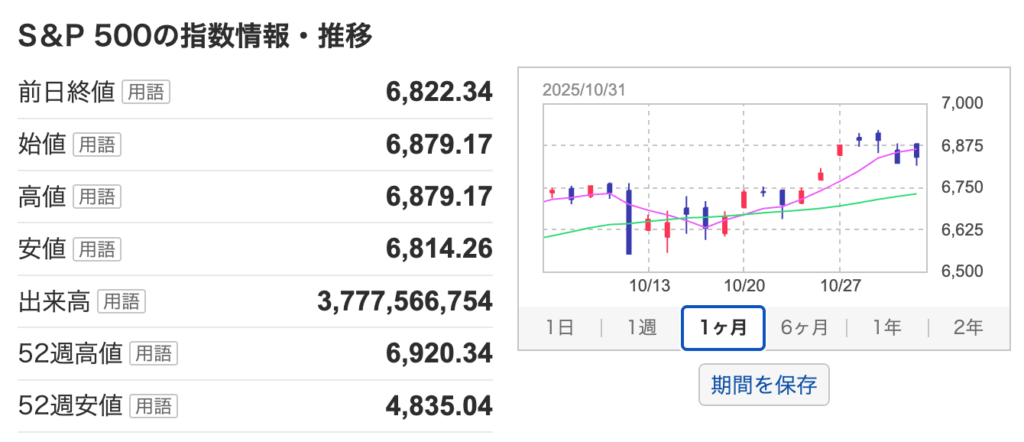 | S&P500 | 6,711.20 | 6,840.20 | +1.9% | 前半堅調→月末は失速気味 |