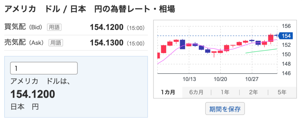 | ドル円(円/ドル) | 148.22 | 154.38 | +6.16円(円安) | 円安傾向も方向感は限定的 |